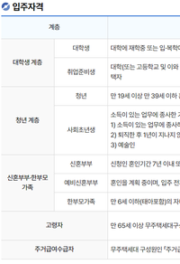 | 대학생 | 재학 중 또는 입학 예정, 무주택자 | 전년도 도시근로자 가구당 월평균 소득의 100% 이하 |