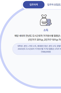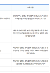 | 취업준비생 | 졸업 또는 중퇴 후 2년 이내, 무주택자 | 전년도 도시근로자 가구당 월평균 소득의 100% 이하 |